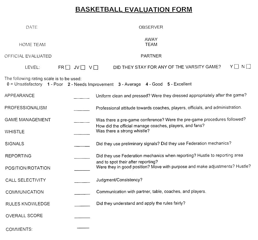 This form will be used by the NMBOA’s evaluation team in judging an official’s professionalism and readiness.
